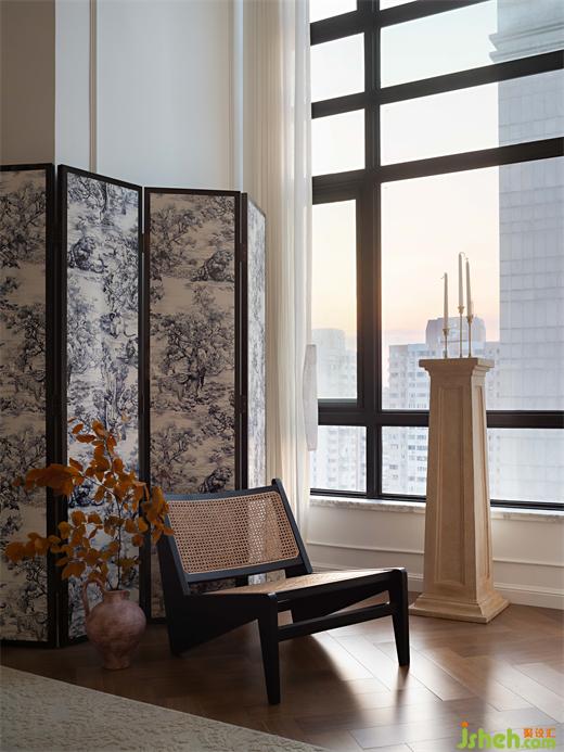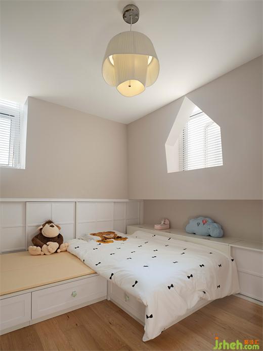 整棟大樓外觀是一個(gè)法式的設(shè)計(jì)造型,樓頂是有斜頂鋪瓦片,所以戶內(nèi)二樓幾乎都是有斜角的頂面,給人帶來一種歐洲風(fēng)情的感覺,于是我們保留了它原來的設(shè)計(jì)。
