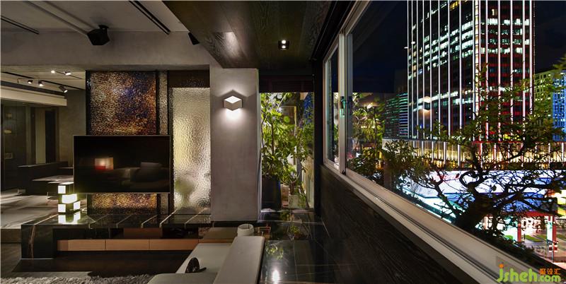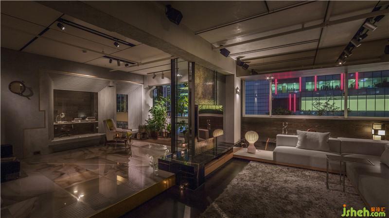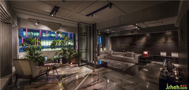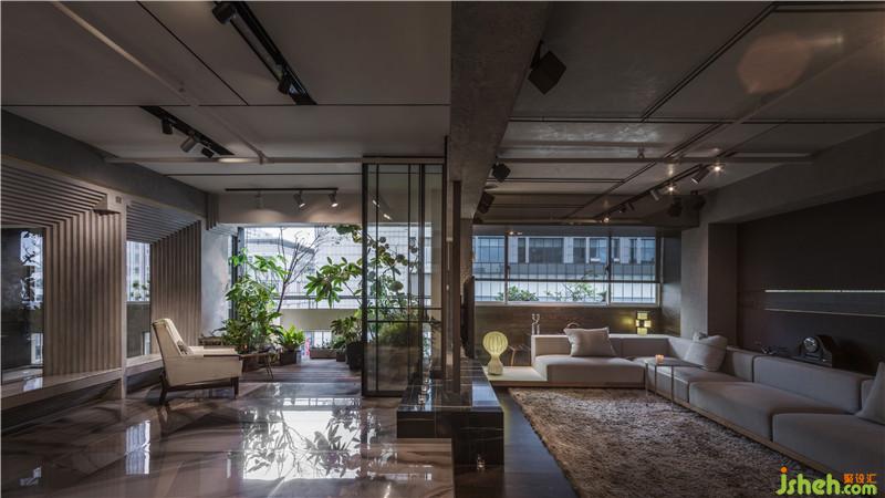 在這個(gè)高密度城市的環(huán)境中,此空間有別于一般工作空間,以反物理架構(gòu)的場域?yàn)楦拍睿瑢敉鈭鼍耙詿o邊際的手法向內(nèi)延伸一直貫穿至內(nèi)部接待區(qū),打造出模糊室內(nèi)與室外之區(qū)隔的開放式空間,令視線得以貫通、并將空氣與光線引入室內(nèi),借以達(dá)到低度使用空調(diào)與燈光等耗能設(shè)施,并且感受自然空氣及光線氛圍,呈現(xiàn)一個(gè)「都市綠洲」的環(huán)保概念。