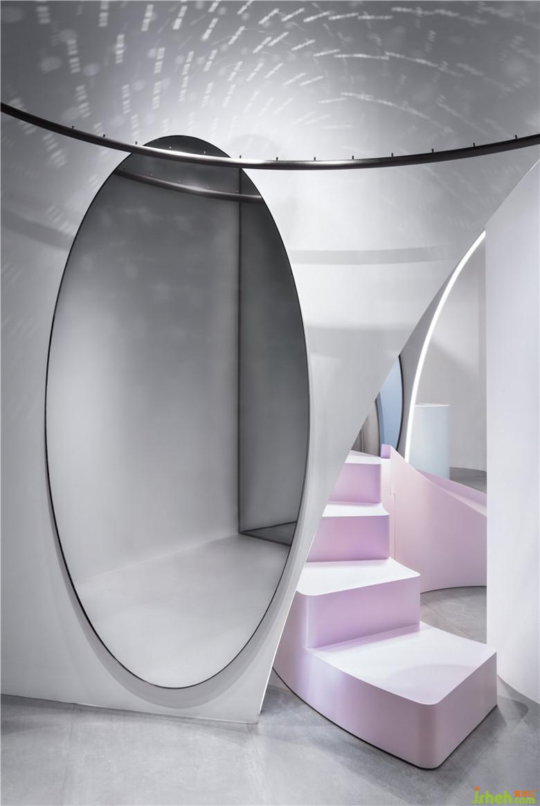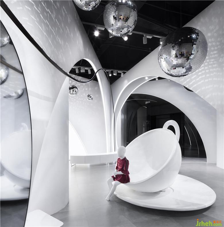 室內(nèi)設(shè)計師鏡面的巧妙運(yùn)用,給空間增加了更多趣味。幾個巨大的燈球,折射出夢中密林的斑駁光影,無限神秘又充滿童心。穿衣鏡與空間融為一體,在滿足實(shí)用功能的同時,也為想象力造景,把這里變成了一個制造夢想、販賣快樂的地方。