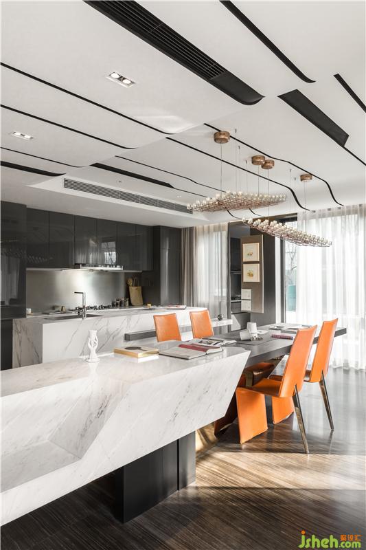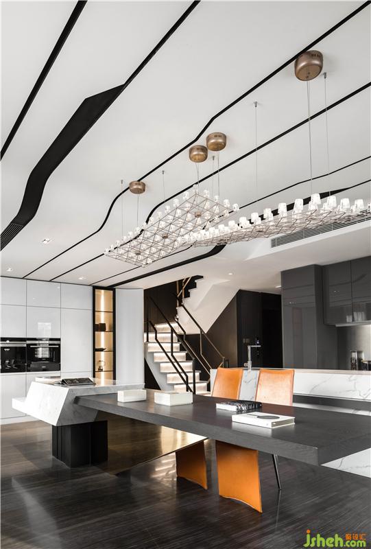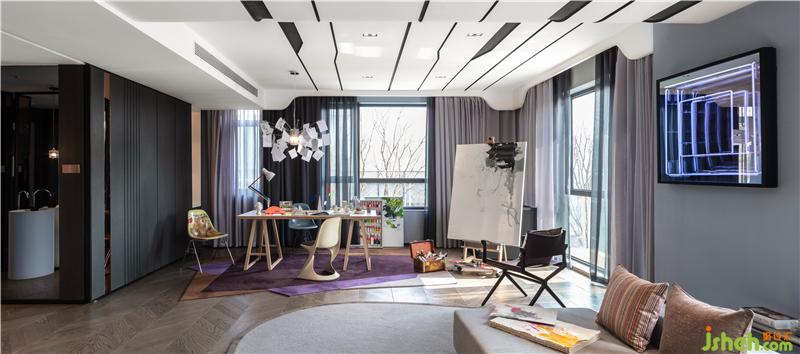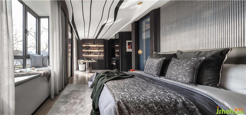 主臥獨(dú)立而又私密,深色調(diào)的柜體與鏡面隔斷搭配出后現(xiàn)代的時(shí)尚感。空間之間相互關(guān)聯(lián),又相互對話。樣板房設(shè)計(jì)