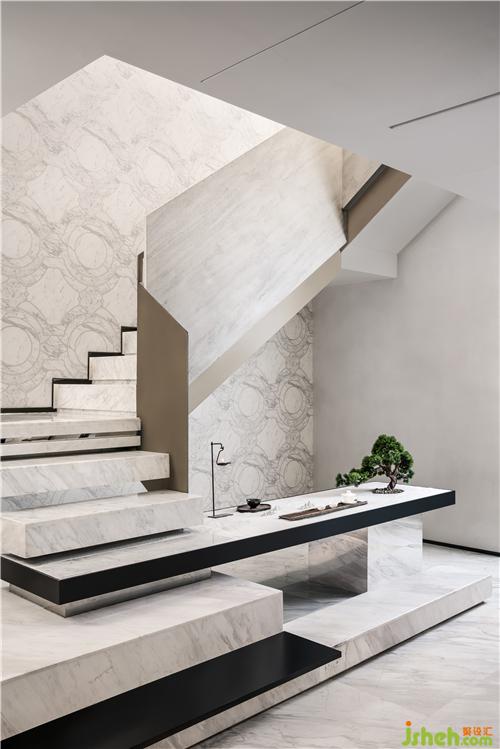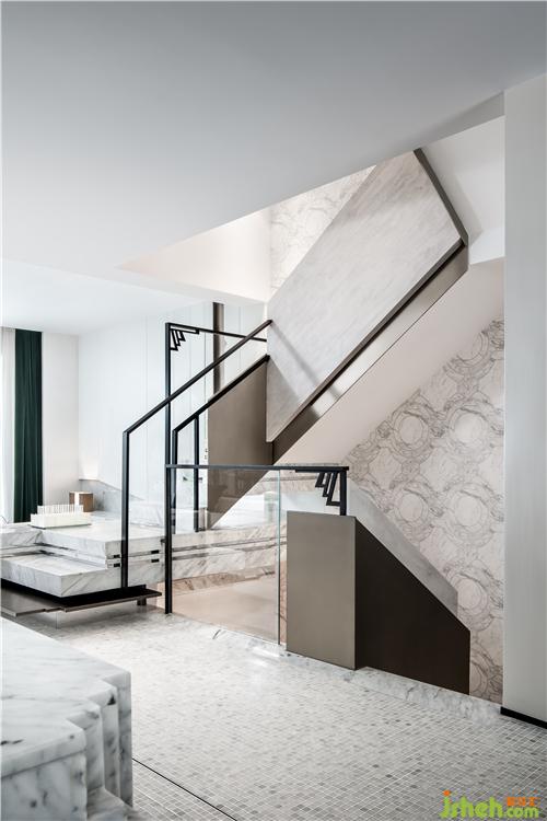閱歷風(fēng)云者,好將遍行世界的見識(shí)和知萬物的品味藏于一室,細(xì)細(xì)回味追索。白色灰紋大理石展示臺(tái)硬朗的材質(zhì)與雅致的象牙白軟包沙發(fā)同時(shí)營造仿若虛實(shí)的對(duì)立,為收藏場(chǎng)域增添飽滿高漲的戲劇張力。