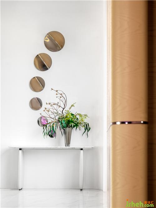 由樓梯而上,猶如跨域另一個(gè)空間,一系列轉(zhuǎn)換帶來情感的波瀾起伏。以月相形態(tài)衍生不同材質(zhì)的鏡面裝置,在不同顏色、大小的組合下碰撞出強(qiáng)烈的空間情緒。炙熱、張揚(yáng)、典雅、藝術(shù),碰撞出雷·布拉德伯里《火星編年史》世界里浪漫玩轉(zhuǎn)的科幻世界。詩意悠然,像訴說著潮汐引發(fā)的時(shí)空扭曲,想訴說著空間的怪誕奇趣,像用心感知的生活之光,充滿意味深長的雋永。