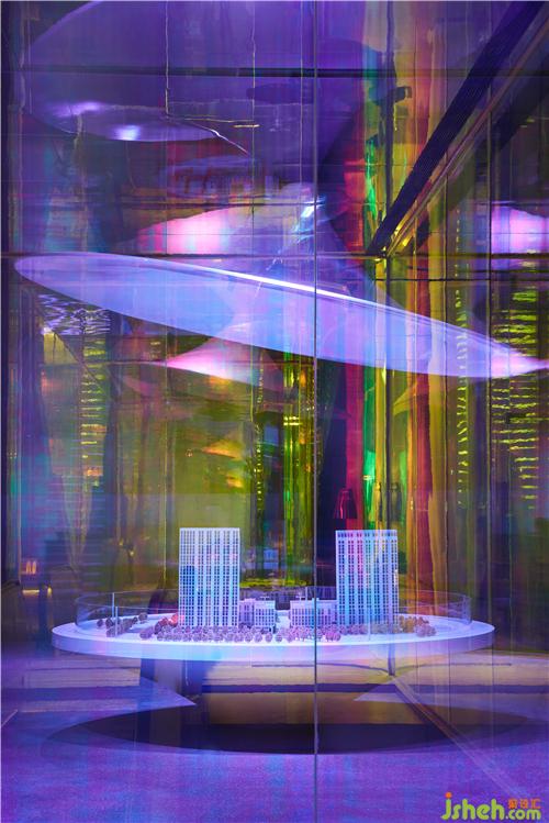 光是空間的魔法,冷暖兩種色調交織、赤橙黃綠青藍紫共舞,如繁華都會的山海流瀾,似游走夜幕的燈火霓虹,為極具線條和幾何感的空間韻律,延綿出一席流動的視覺盛宴。流溢的光影為空間賦予生命色彩,材質、光感、藝術三者彼此烘托時空記憶。在變幻的光影視界中,空間仿佛在呼吸、起舞,時間秩序被重構,空間界限被打破,場景與情感交織于此融匯,輕奢、靈動亦有質感的情景場域,由此盈散。