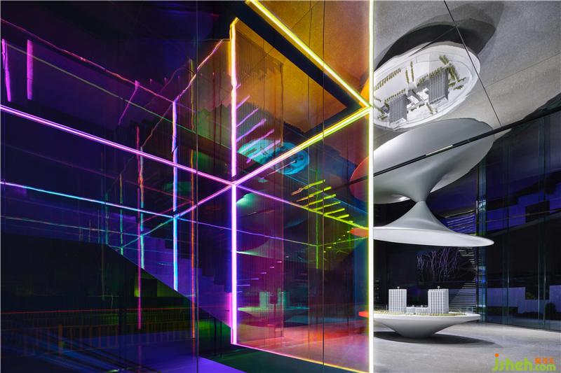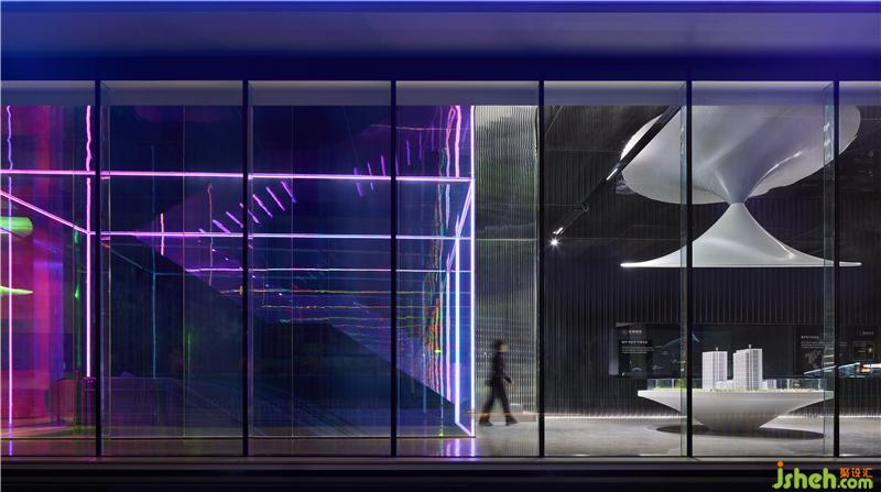 弧線與環(huán)線多維并進,和而不同,平行相生,延展空間張力,引導視覺走向,令時空穿越之感呼之欲出。