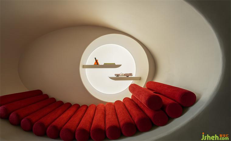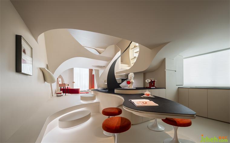 嵌入式手法打造的穴居空間,亦巧妙完成了餐客廳之間的功能銜接。樣板房設(shè)計(jì)將所有的野奢趣意與柔情詩意,一同化境。在短暫的小憩中,渾然忘卻時(shí)間,也忘卻自己。似原始森林中的穴居者、乘著宇宙飛船遨游太空的旅行家,又似靜謐安魂曲中的一章。