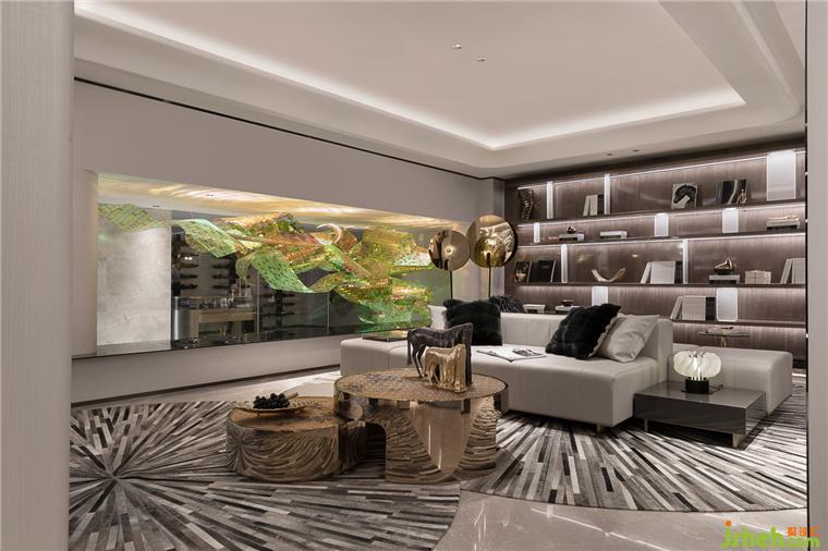 坐在地下一層的小廳里,有明晃晃的光,有明暗間朦朧的影。米色皮質(zhì)沙發(fā)與地毯圍合而成的公共區(qū)域,以最舒適的體驗(yàn)邀請(qǐng)人坐下享受時(shí)光。從天窗漫射下來(lái)的光線,映照在藝術(shù)裝置之上,在有限的空間里實(shí)現(xiàn)功能需求與至美的平衡。