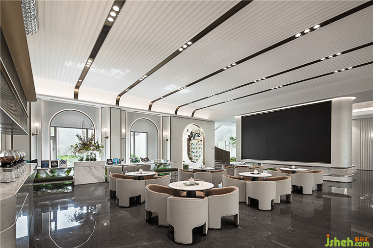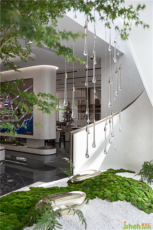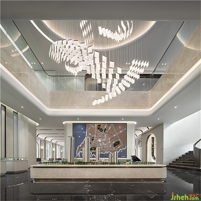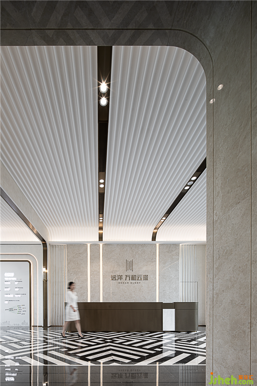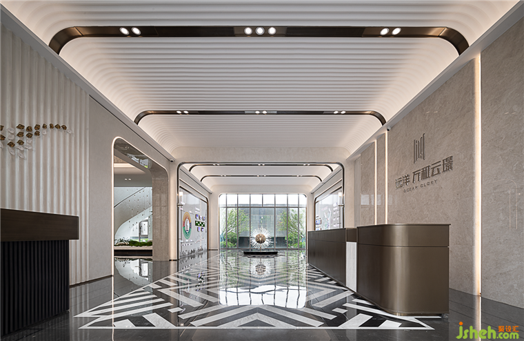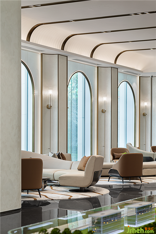 遠洋萬和云璟設計風格定位“現(xiàn)代都市摩登”,結(jié)合“云璟”二字所蘊含的溫柔與優(yōu)雅,營銷中心設計引用青島的“水”文化作為設計語言的提取,在空間中穿梭與游戈。汲取新裝飾藝術的曲線設計形態(tài),融入都市煙火,與簡潔的當代語匯交織,靜淌的線條與自然、文化相牽,延續(xù)典雅而細膩的質(zhì)感。