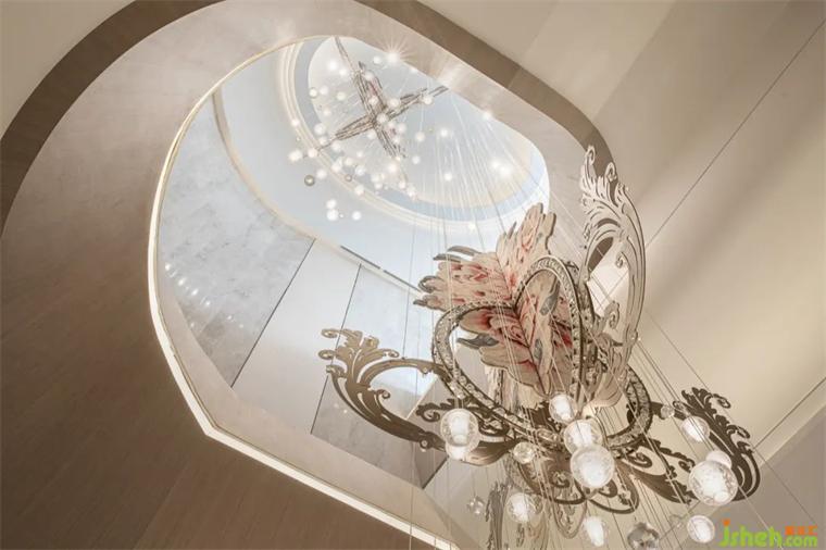并從中提取元素“華冠、華飾、華彩、華影”,售樓處設計以藝術東方的手法進行轉譯,從川劇藝術中提煉文化、意境、色彩、布局,以當代手法解構、拆解、闡釋川劇的形式美,形構出當代材質的藝術裝置,加之色調的點染,更顯古典氣質與現(xiàn)代格調的交融。