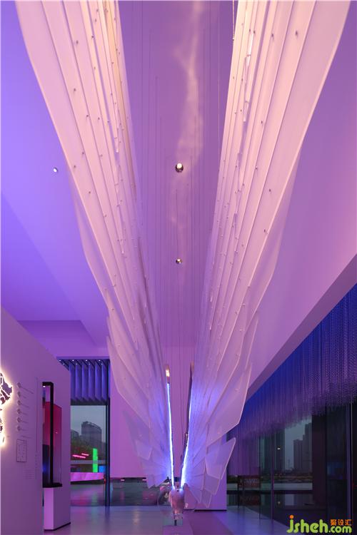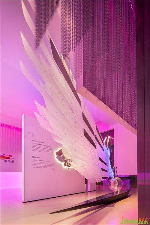 立于開端的藝術(shù)裝置,仿佛是櫥窗里最精致的那款寶石,一件由亞克力羽片、金屬骨架與霓虹燈帶組成的巨型之翼,生活館設(shè)計仿佛游走于太空中的流光軌跡。