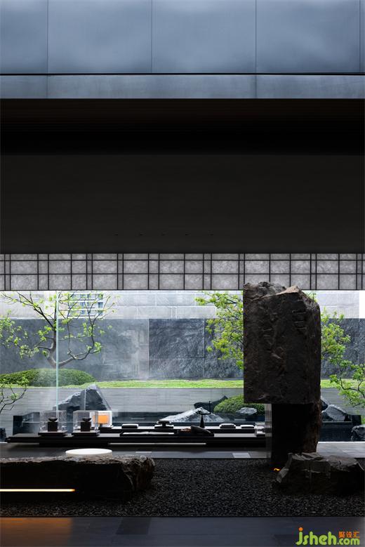 當(dāng)陽(yáng)光透過(guò)天井灑在下方石頭藝術(shù)裝置上時(shí),仿佛為其注入了生命。隨著太陽(yáng)的位置變化,雕塑與光影相互交織,形成變幻莫測(cè)的光影效果。