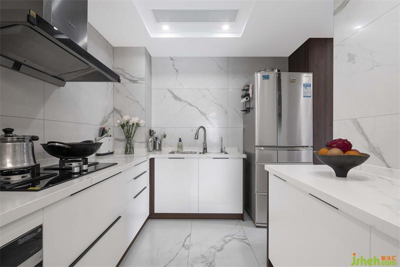設(shè)計(jì)師緊扣主題,運(yùn)用現(xiàn)代設(shè)計(jì)理念,把中式元素賦予整個空間。從空間布局上,在滿足業(yè)主的功能需求外,盡量延展、挖掘空間。如中西廚的連貫。