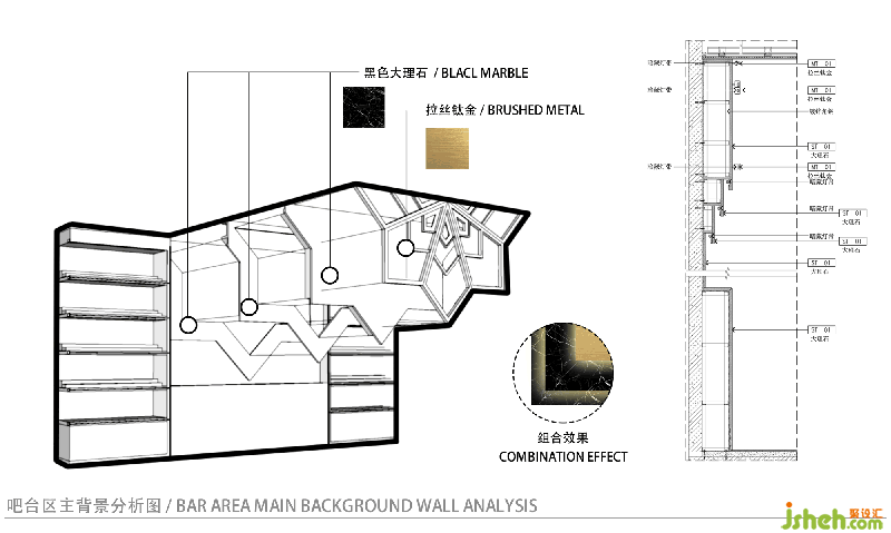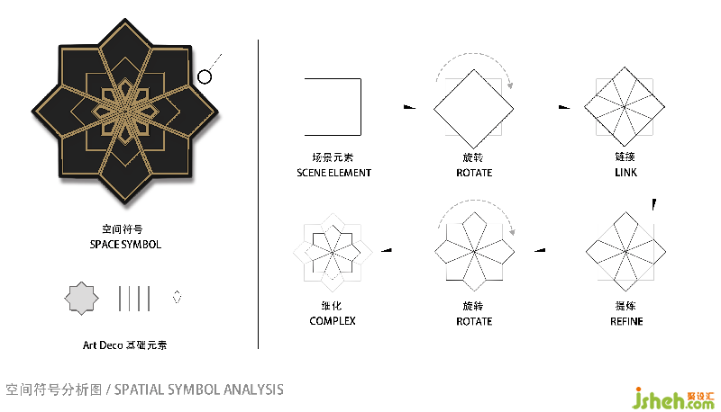 在設(shè)計(jì)過(guò)程中,我們以場(chǎng)地的結(jié)構(gòu)為基礎(chǔ),進(jìn)行設(shè)計(jì)與演變,營(yíng)造出”鏡花“的雛形。通過(guò)單一元素的復(fù)疊與衍生并配合金屬色和對(duì)比色的巧妙使用,使場(chǎng)地產(chǎn)生具有獨(dú)深圳酒吧設(shè)計(jì)特ART DECO風(fēng)格的文化符號(hào)。空間布局則是基于場(chǎng)地的基礎(chǔ)功能以及現(xiàn)場(chǎng)的特殊結(jié)構(gòu)來(lái)展開(kāi)設(shè)計(jì)和思考。