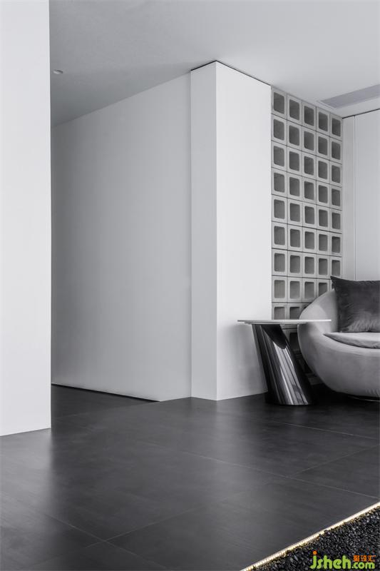 白色的墻面與灰色框體相成,