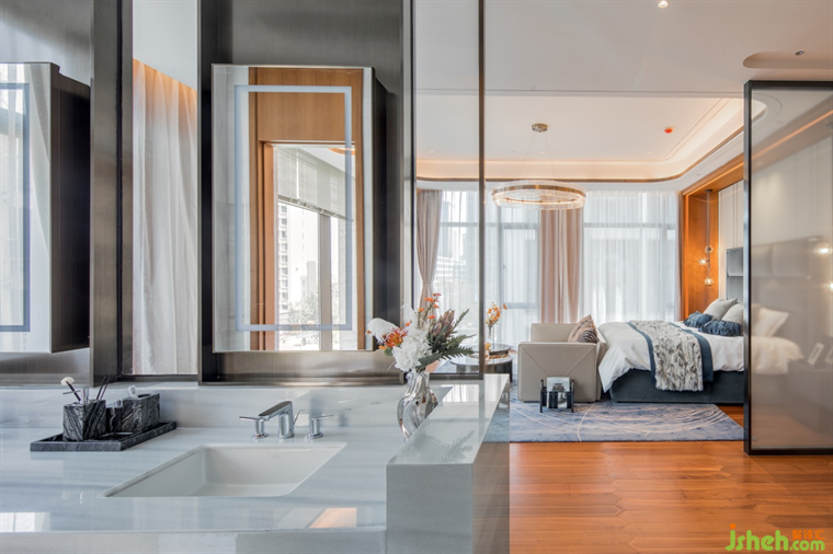 浮世喧囂,每個(gè)人都需要一處歸心區(qū)域。主臥室、衣帽間和衛(wèi)生間的組合形成一個(gè)層層遞進(jìn)的私密空間。起居室采用了考究的材料質(zhì)地與配色,升華生活的品質(zhì)感,在喧囂的現(xiàn)代都市中予人溫暖而細(xì)膩的慰藉。整個(gè)空間的氛圍都圍繞著安定和諧的主線展開(kāi)。獨(dú)立的衣帽間實(shí)現(xiàn)穿衣自由與互不干擾的起居方式,生活只有互動(dòng)沒(méi)有碰撞。