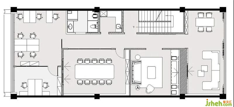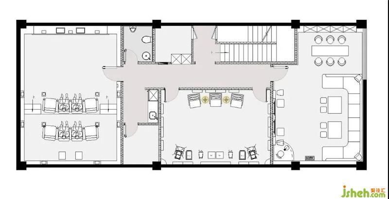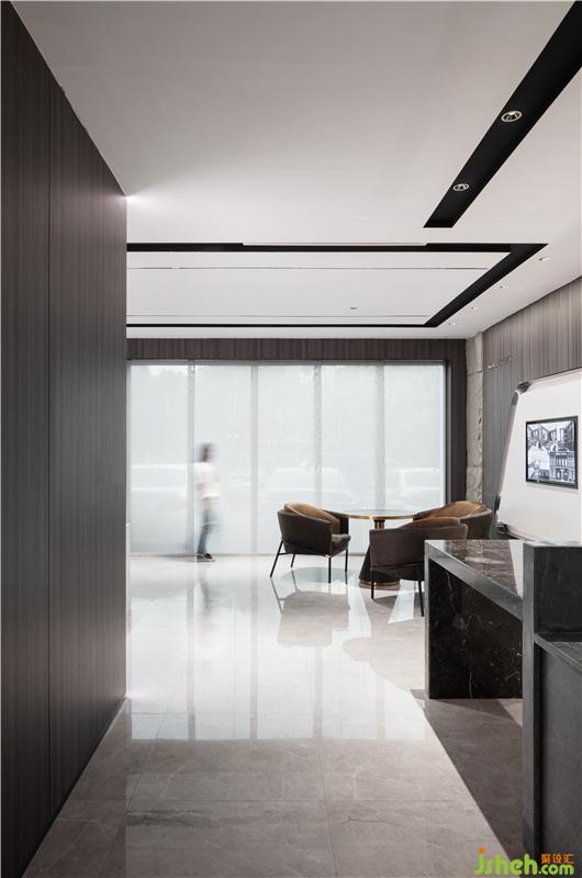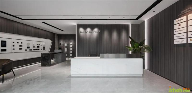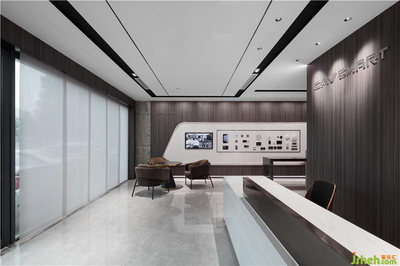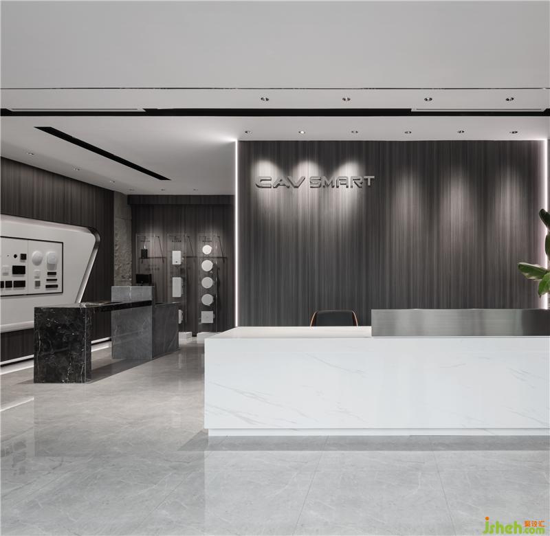 首先最重要的開(kāi)始,應(yīng)該是LOGO背景墻。兩邊暗藏?zé)魩?,從地面一直延伸至天花,起到延伸感。從前臺(tái)一步步牽引,開(kāi)闊明亮,裝修設(shè)計(jì)摒棄主燈帶來(lái)的壓抑,在沒(méi)有主燈的空間里,信息流動(dòng)通透自然。黑色燈槽平行交錯(cuò),科技時(shí)尚感逐步放射出來(lái)。