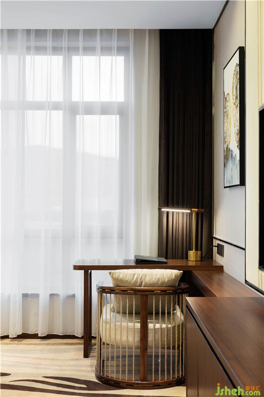 酒店設計不同于傳統(tǒng)中式的繁瑣與沉悶,新中式風格更強調(diào)將一切化繁為簡,在造型基礎(chǔ)上極致簡約,再搭配精巧的燈具、雅致的掛畫,古典的屏風、富有情趣的博古架等,使整個居室在濃濃古韻中滲透幾許現(xiàn)代氣息。