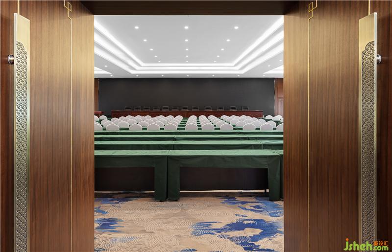 在軟裝中,除了常用的原木色中式辦公桌外,中式元素與現(xiàn)代材質(zhì)的巧妙兼柔,營造一種樸素典雅的會議氛圍。