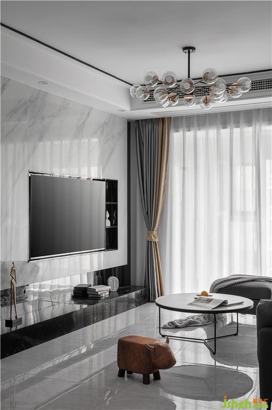 不同與上期的設(shè)計風(fēng)格,本期客廳整體色調(diào)以黑白色系為主,重慶室內(nèi)設(shè)計師將客廳及休閑區(qū)等公共共享空間,放在了陽光充沛的方向,讓居家生活享受更美好的大自然的饋贈。