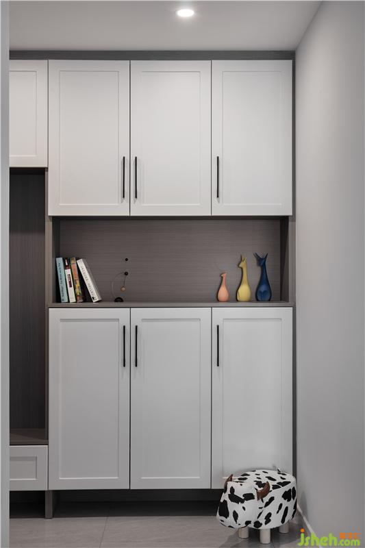入口玄關(guān)是一排簡潔的收納柜,業(yè)主可以盡情擺放自己喜愛的物品,既美觀又得體。