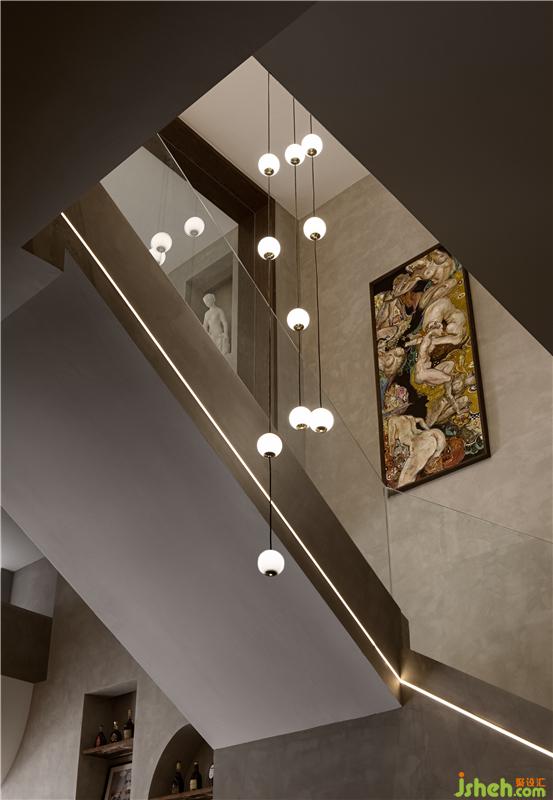 三樓VIP包房區(qū)域,連接著二層下沉景觀池,向上架空半米所生成的獨(dú)立空間。