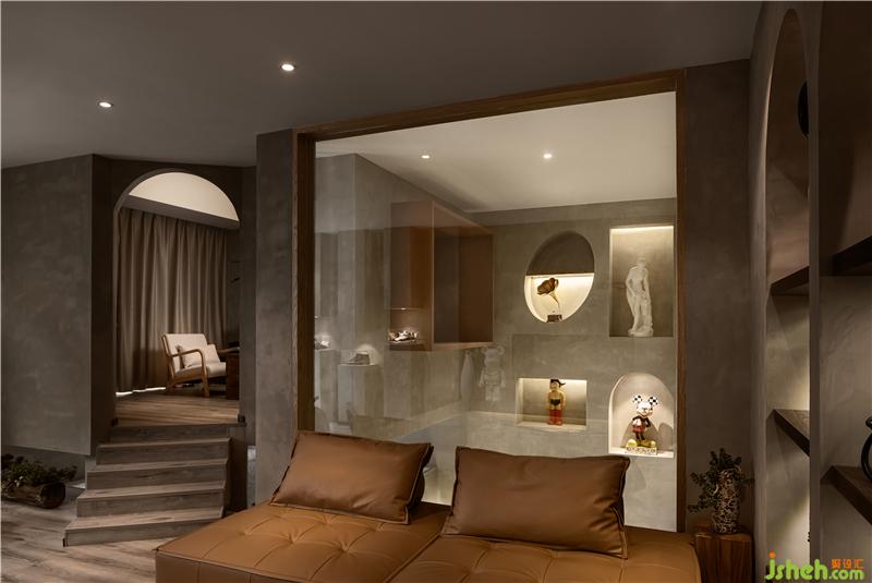 其次,在二樓還考慮了一塊休閑區(qū),設(shè)有皮質(zhì)軟彈的沙發(fā),既可背靠而坐,也可欣賞魔幻窗景。置身其中體驗(yàn)產(chǎn)品樂趣,或者與店主暢聊中古文化新思想,來此的每一秒都不虛度。