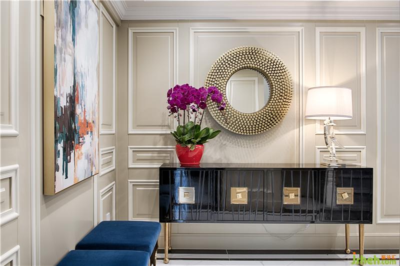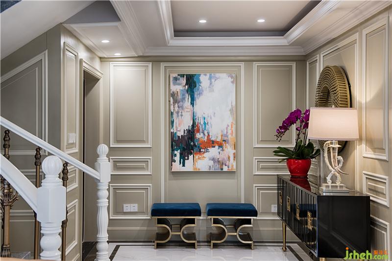 并以木質線條直角鑲邊,簡化了傳統古典的繁復