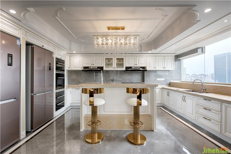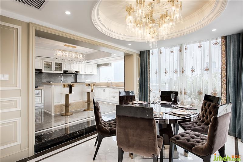 水晶燈獨特的雕花造型細細勾勒摩登古典美。