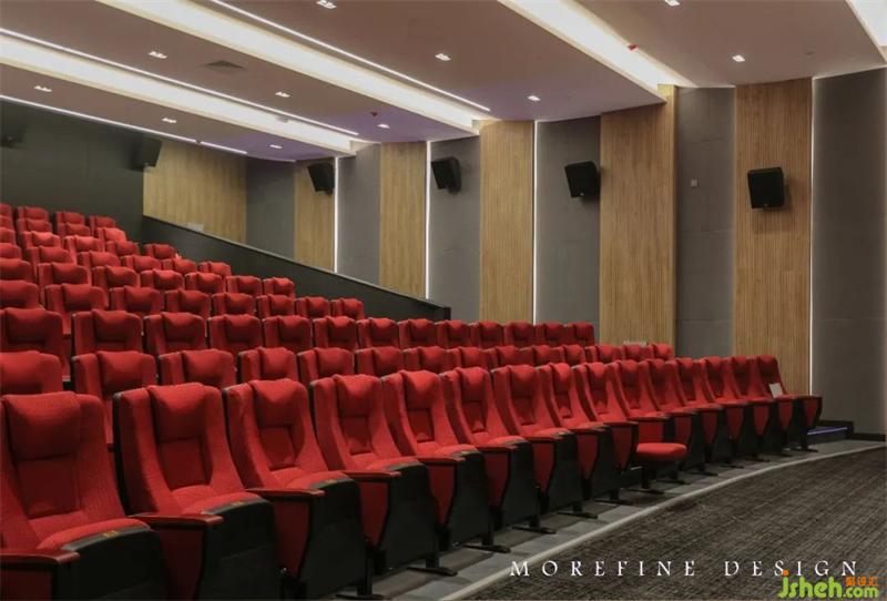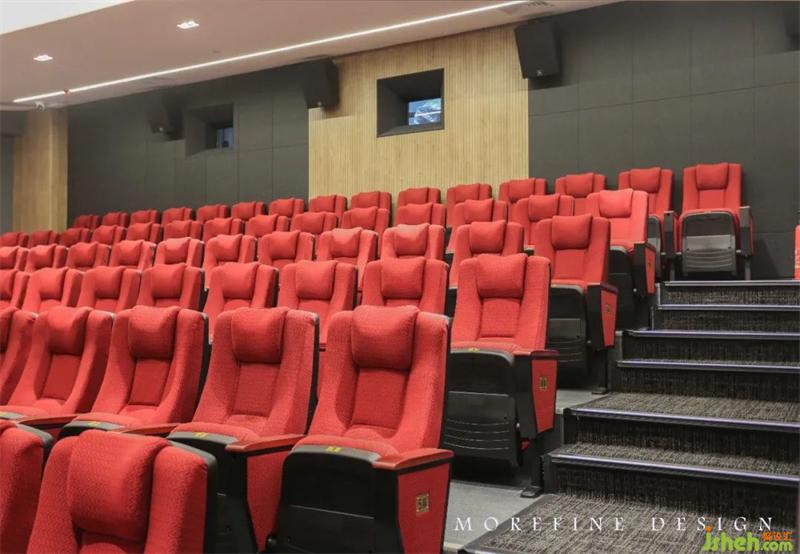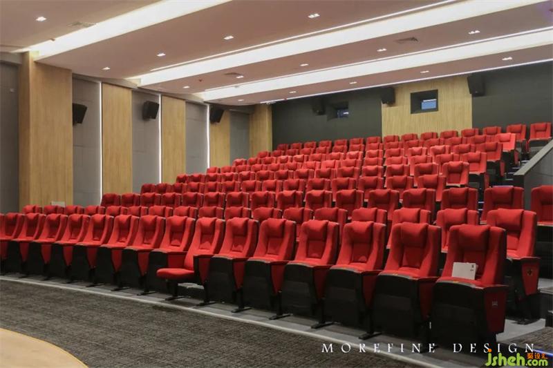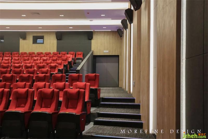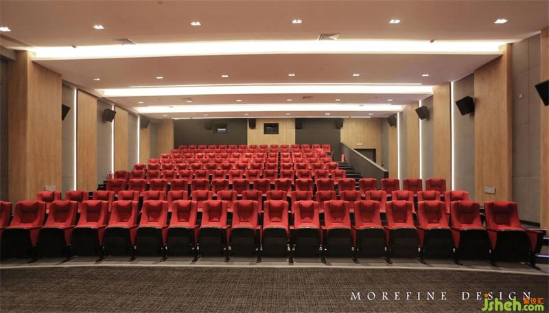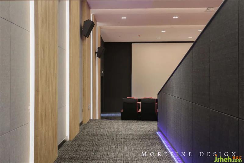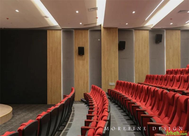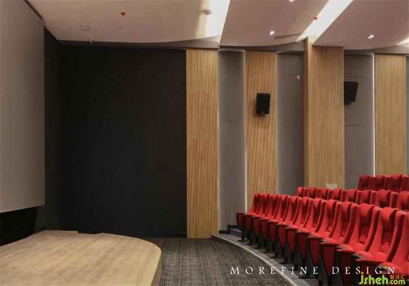通過理性嫻熟的色彩、材料把控,能快速識別各個功能區(qū)的區(qū)位。大堂天花板的吊頂設計靈感源自舞臺燈光造型,營造出沉浸式體驗,空間層疊漸進,頂部流線曲形環(huán)繞,讓人猶如置身于張弛有度的舞臺之間,使整個空間更具藝術(shù)感。