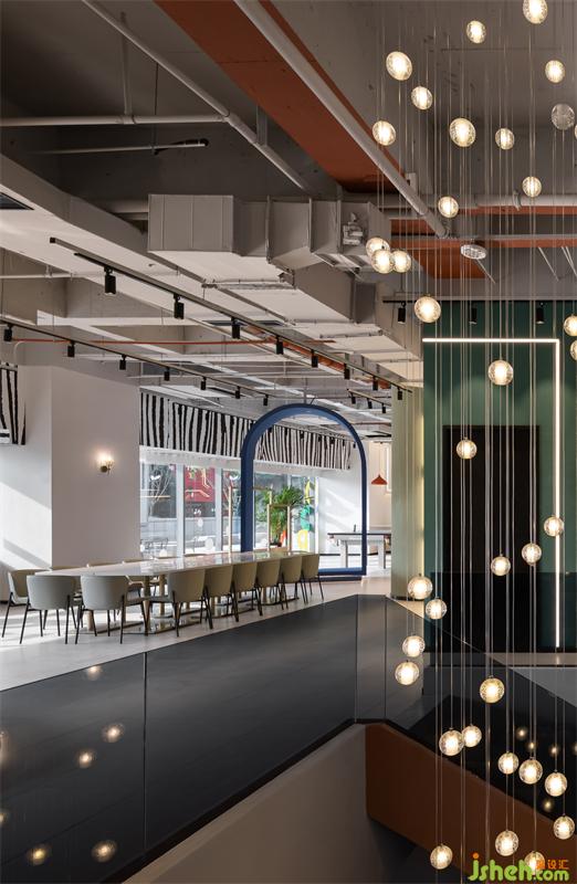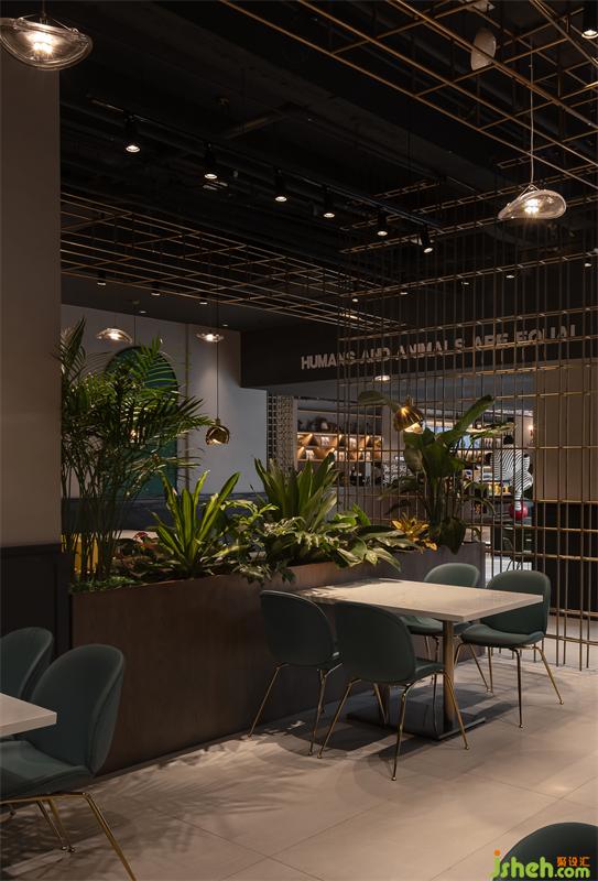 就餐區(qū)像緞帶一般輕柔分界,延伸至下個(gè)區(qū)域,