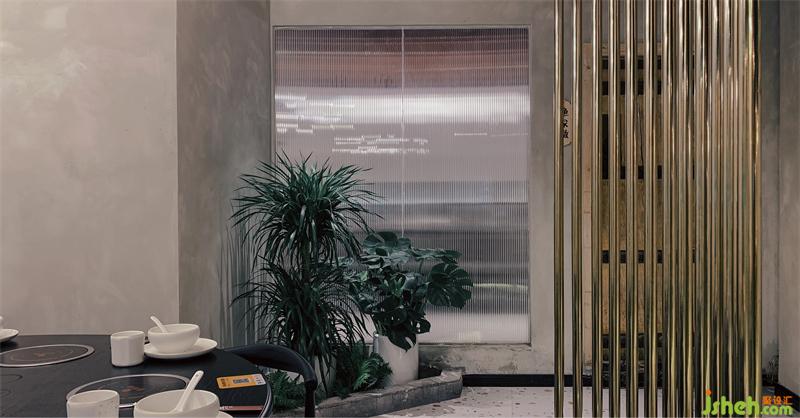 空間圍繞中庭展開,汲取自然靈感與光影、生態(tài)重構(gòu)整個(gè)空間,過道讓步于顧客,借墻面落地窗,結(jié)合“室內(nèi)端景”呼喚顧客回歸自然,最后植入 “慶魚年”IP,營造美味口腔的靈魂直擊,于自然、空間與人的交互中重組空間秩序。