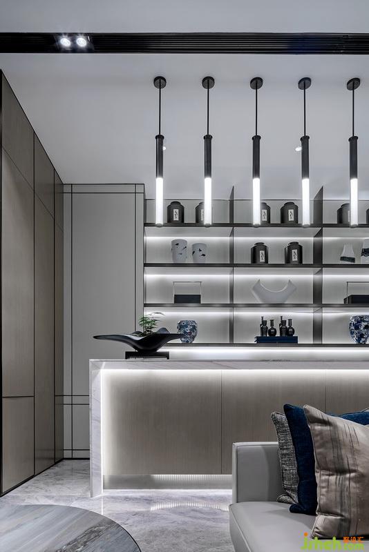設(shè)計融入現(xiàn)代時尚的語境,運用目前都市精睿人士推崇的新亞洲風格,以氣質(zhì)、細節(jié)等展現(xiàn)出精致、穩(wěn)重的紳士品位。不同材質(zhì)的變換,既有各自獨特性又相依并存,共奏出一曲和諧的樂章。