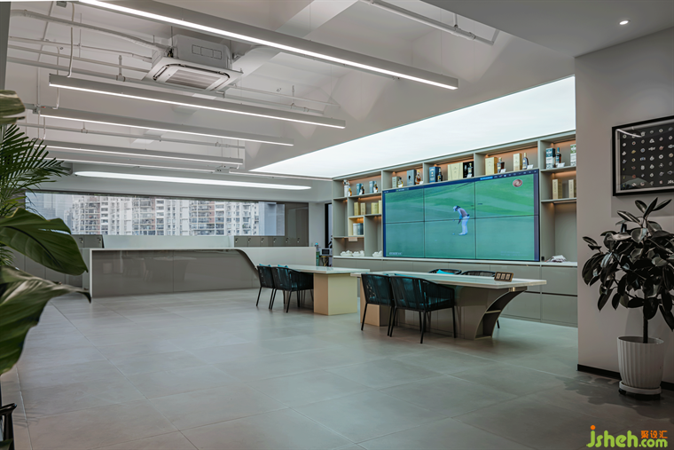 高爾夫中心的功能被有序的規(guī)劃成開放和封閉的空間,引導(dǎo)著游客從公共路徑到私密功能區(qū)域的移動。顧客還可以在公區(qū)的室內(nèi)景觀、室外公共平臺中找到自然植物的設(shè)計(jì)元素,這些景觀以其柔和的曲線形狀裝飾著公共休息區(qū)的空間。我們以最佳觀景的方式來分配內(nèi)部的空間規(guī)劃,當(dāng)人進(jìn)入時,會感受到流動的視線結(jié)構(gòu),為與自然景觀的融合,自然與高爾夫,形成流動空間的親密組合,景致引導(dǎo)視線,形成溶景入遠(yuǎn)方的獨(dú)特感知。深圳旗艦店設(shè)計(jì)公共走廊的直線線條RGB燈具設(shè)計(jì)引領(lǐng)顧客穿梭在其中,感受不同空間的開放與圍合。公共區(qū)、社交休息區(qū)和戶外露臺以及高爾夫開放打位擺放了高爾夫藝術(shù)裝置來自于高爾夫俱樂部品牌的標(biāo)志logo及周邊;讓主通道的作用并非傳統(tǒng)的走廊,而是作為一個公共空間,沿途提供不同的視覺感官體驗(yàn)。娛樂上采用韓國最前沿的高爾夫設(shè)備的技術(shù):傳感器、投影儀和IT訓(xùn)練控制系統(tǒng)全部從初期就集成到設(shè)計(jì)中,以創(chuàng)造最佳的用戶體驗(yàn)。俱樂部還為顧客提供了一系列功能型服務(wù)空間,如儲物柜,vip區(qū),餐飲區(qū)和休閑區(qū),所有這些都有助于用戶體驗(yàn)的提升。
