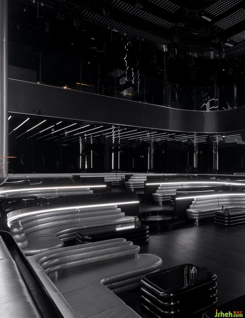 延續(xù)均衡與和諧的創(chuàng)作靈感,設(shè)計團隊在9米層高的主體空間,以升降式DJ舞臺為核心進行敘事延展和功能分布。夜店設(shè)計提供一種前所未有的體驗,全景景觀和所有的細節(jié)清晰呈現(xiàn)。