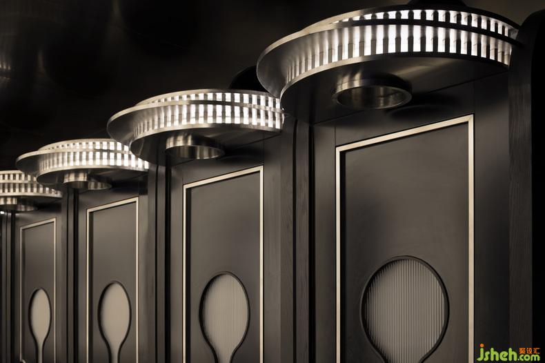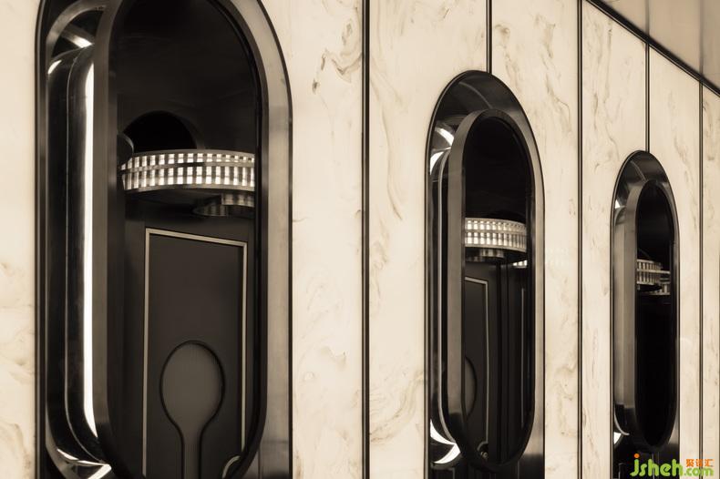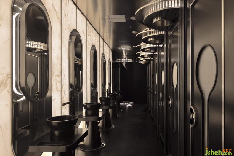 強(qiáng)烈的色彩、簡(jiǎn)潔設(shè)計(jì)與新材料的結(jié)合,制造透視錯(cuò)亂的狂歡盛宴,“劇場(chǎng)”概念的加入令視覺(jué)游戲更加復(fù)雜。吧臺(tái)以退讓式設(shè)計(jì)將場(chǎng)地讓渡給“舞臺(tái)”,夜店設(shè)計(jì)關(guān)注點(diǎn)歸放于人自身以及音樂(lè)上。洗手間則以逆市面潮流的復(fù)古美學(xué),沉淀為提供身心緩沖與補(bǔ)給的劇場(chǎng)“后臺(tái)”。