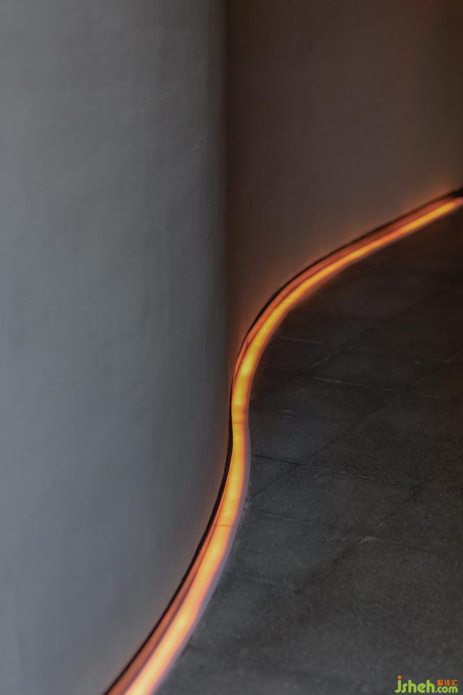 180度曲面環(huán)抱的酒墻,每一個面都是溫柔的,伴隨著2100度的色溫,酒吧設(shè)計像一個點燃篝火堆的山口洞穴,溫暖又有歸屬感.