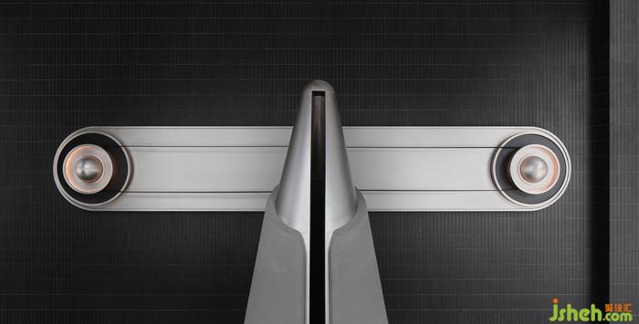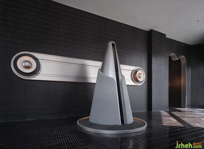 緘默深邃的黑色蔓延進(jìn)空間內(nèi)部的每一處,神秘與未知感暗涌浮動(dòng)。光感材料經(jīng)由燈光設(shè)計(jì)的映襯,讓人聯(lián)想到“地心引力”的黑暗和激烈,以及蘊(yùn)含著天然礦洞探索的工業(yè)機(jī)械臂裝置,并生的倒錯(cuò)和抽離感,仿佛穿越隱含浩瀚之力的原荒境域,預(yù)見一個(gè)“未知的自我”。