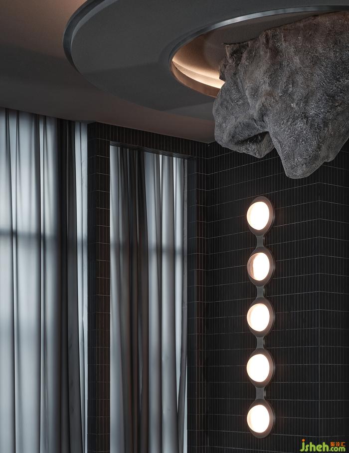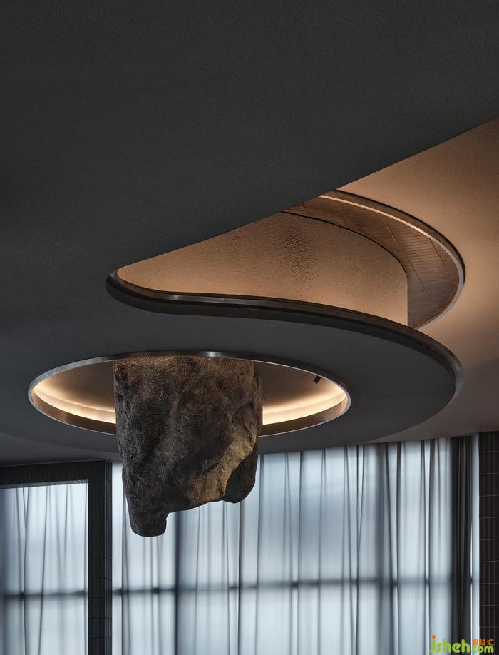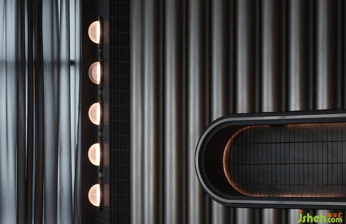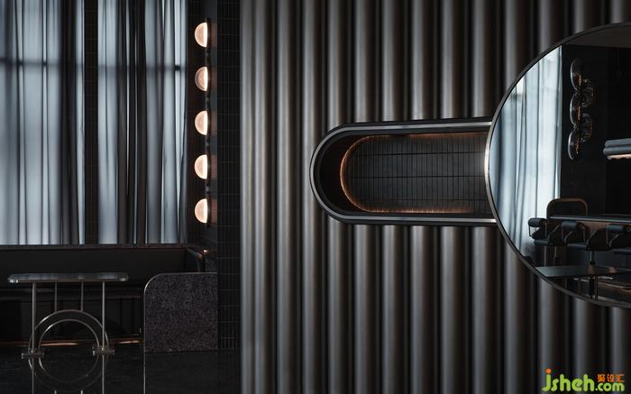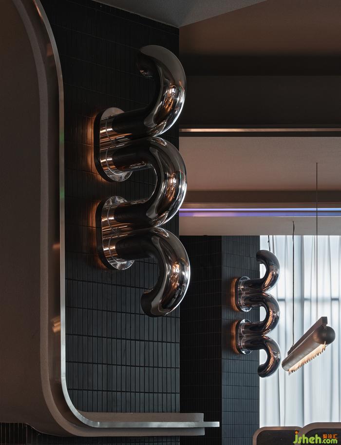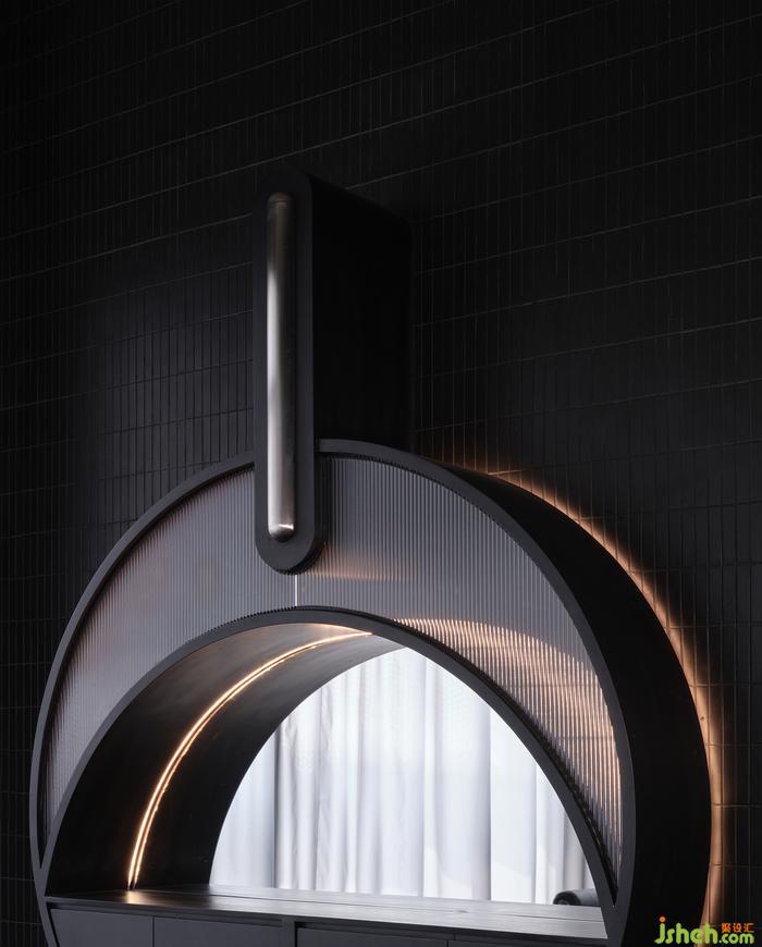 “如果你能改變?nèi)藗冇^看的方式,就可能改變他們思考的方式?!边B接垂直動線的玄關(guān),其布景由瓷磚、涂料、不銹鋼以最基礎(chǔ)的狀態(tài)形成組合,非傳統(tǒng)的工業(yè)材料轉(zhuǎn)譯而成視覺符號,雖無刻意卻似魔法,餐廳設(shè)計承載功能之外的智性與美感的雙重愉悅,延展撩人意涵的冷幽默。