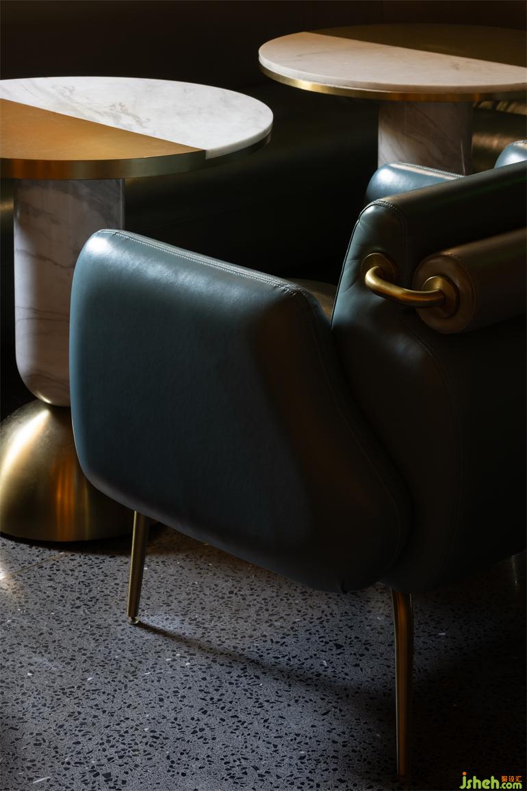 多層空間延續(xù)建筑的模塊化思維,以點、線、?為單元要素,構建具象?何形體的功能與裝飾界?,?銅、?洗?、?磨?的材質碰撞貫穿始終。