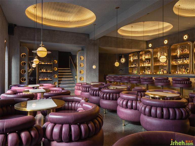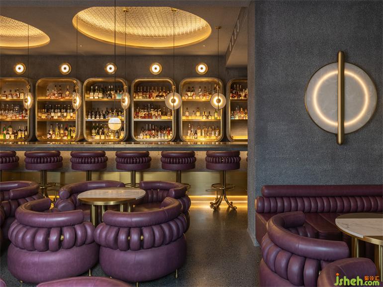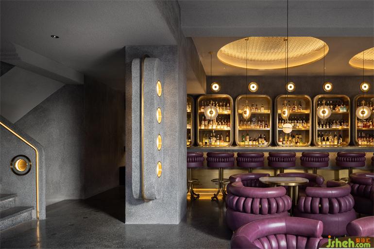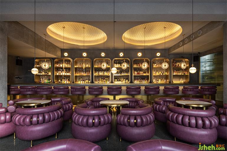 ?百平?的?層空間,則選擇帶有灰調的紫紅?系,裝修設計以更精致?神秘的場景韻味滿??粘性客?偏私屬定制的產(chǎn)品和服務需求。圓環(huán)狀的流線型語匯從天花照明延續(xù)?包裹感造型的座椅組合,裝修設計??與?銅裹挾浸染時光的?業(yè)復古基調,橫縱之間嵌?式的序列鏡?圓洞?與之構成極具舞臺張?的超前審美體驗。