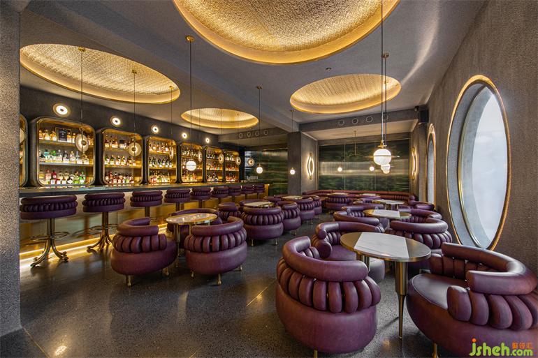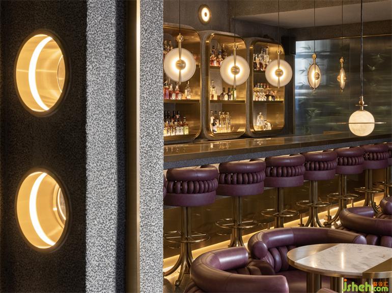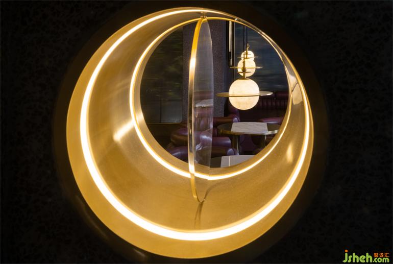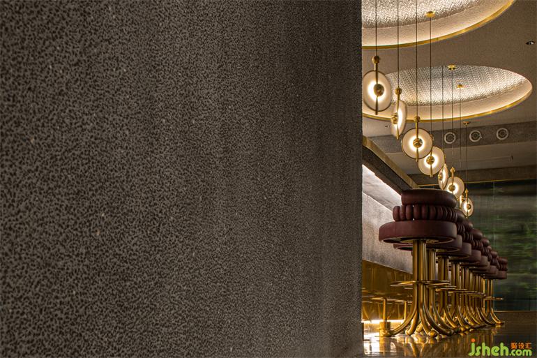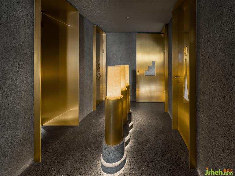 階梯式的通道指引動(dòng)線深?酷炫與克制交織的隨性舞臺(tái),表?冰冷的材料經(jīng)倒?處理?有著溫暖觸感,?洗?飾?的顆粒密度也隨時(shí)間?倍添肌理感。?與銅疊加的三個(gè)圓柱體裝置模擬放??例的“燭臺(tái)”,裝修設(shè)計(jì)映照出環(huán)繞四周的六個(gè)功能性配套空間,符號(hào)化的視覺標(biāo)識(shí)似開啟每扇?的魔法鑰匙,稻草和宣紙混搭勾勒出?茸茸的圖形底紋。