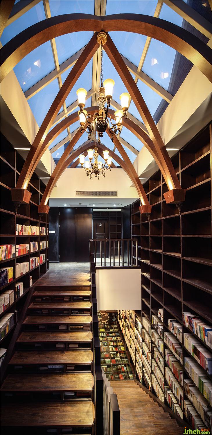 在鐘書閣首層展現(xiàn)的是我們或多或少有些熟悉的場(chǎng)景,它不同的精致角落將我們生活經(jīng)歷和書的微妙關(guān)系小心翼翼地揭露出來(lái),或?qū)⑦@些關(guān)系鄭重其事地收藏起來(lái)。不過(guò),我們內(nèi)心中還有一種閱讀,因?yàn)槲覀儾粌H僅在閱讀中獲得知識(shí),我們需要在閱讀中慰藉焦慮的靈魂。我們已經(jīng)習(xí)慣隨意地閱讀,漸漸忘記了閱讀的儀式,所以我們也許需要一個(gè)更純凈的場(chǎng)所讓閱讀變成一種修煉或者是升華。那就是鐘書閣二層,書的圣殿。室內(nèi)設(shè)計(jì)師