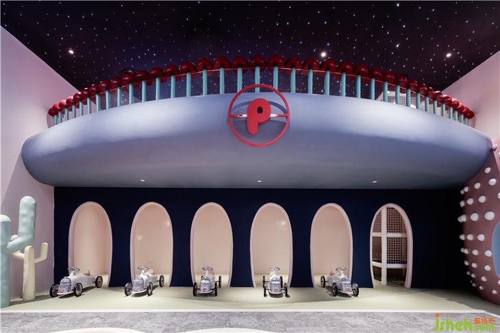 第二區(qū)域:圖書區(qū)--借用彩虹與云朵的關(guān)系表達(dá)雨過天晴后的絢麗景象,并用抽象后的構(gòu)圖完成書架功能以及孩子樂于實(shí)踐的爬高與鉆洞的娛樂功能。