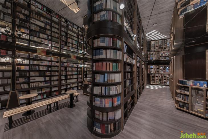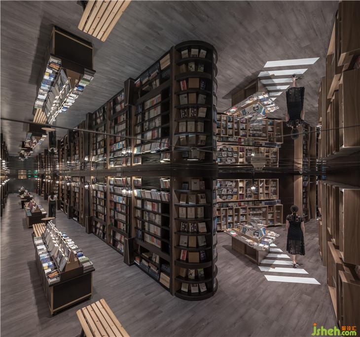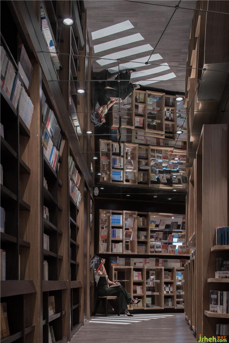 接承這個空間的是一個休閑閱讀的長廊,這里有一排長長的公園椅子,書架設(shè)在兩箱,書墻每隔一段就會有一盞路燈。這里不僅是讀書長廊,更是一個室內(nèi)讀書公園。慢慢行走在書的世界,累了,坐在路燈下的椅子上,靜靜安放精神在一本心愛的書上,正是這個空間想給予讀者的閱讀環(huán)境。室內(nèi)設(shè)計師