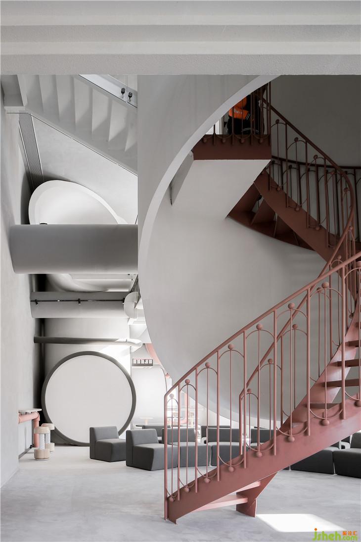 設(shè)計(jì)師希望通過這樣的概念設(shè)計(jì)來述說信息時(shí)代下的革命情懷,材料運(yùn)用上偏向干凈冷靜的混凝土以刻畫空間業(yè)態(tài)背后的干練氣質(zhì),并希望通過空間的垂直動(dòng)線與視線設(shè)計(jì)可以為共享辦公的研發(fā)人員與消費(fèi)體驗(yàn)者提供一個(gè)可以在同一個(gè)藝術(shù)空間下共同創(chuàng)作出一個(gè)多功能復(fù)合型的辦公與商業(yè)模型。