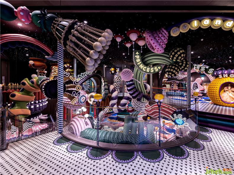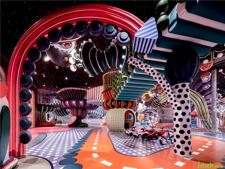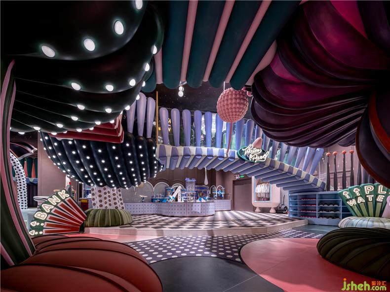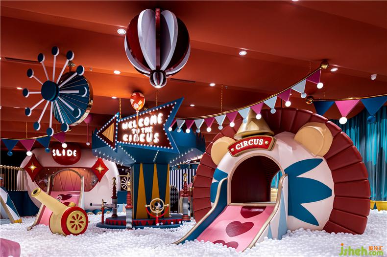 盛夏如夢如幻,如馬戲團(tuán)嘉年華的球池區(qū)歡樂彌漫,處處洋溢著鮮感和律動。奇趣的旋轉(zhuǎn)舞臺與馬戲棚構(gòu)建對話,獅子頭藝化而成的滑梯等裝置矗立在球池之上,設(shè)計(jì)師以大面積高飽和的鮮艷色彩升華球池區(qū)的美感,搶眼火紅與濃重綠色的大膽撞色間,呈現(xiàn)出一番意想不到的夏意景象。