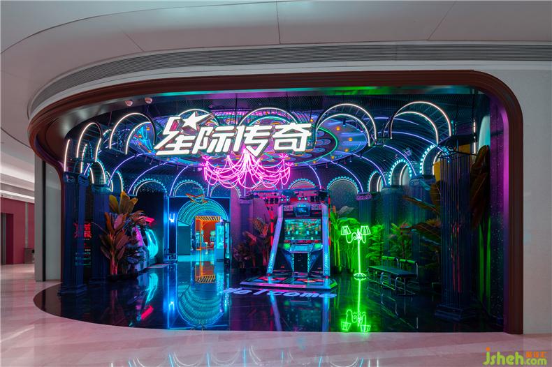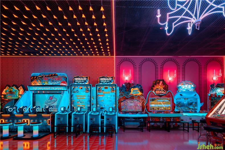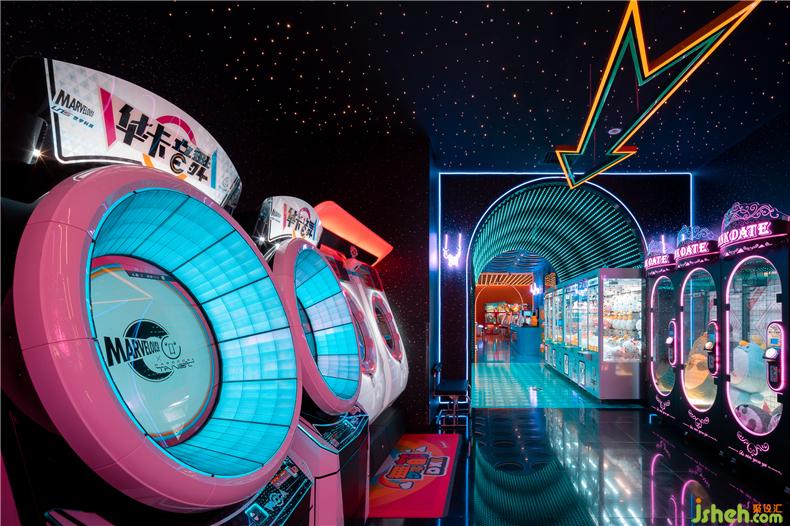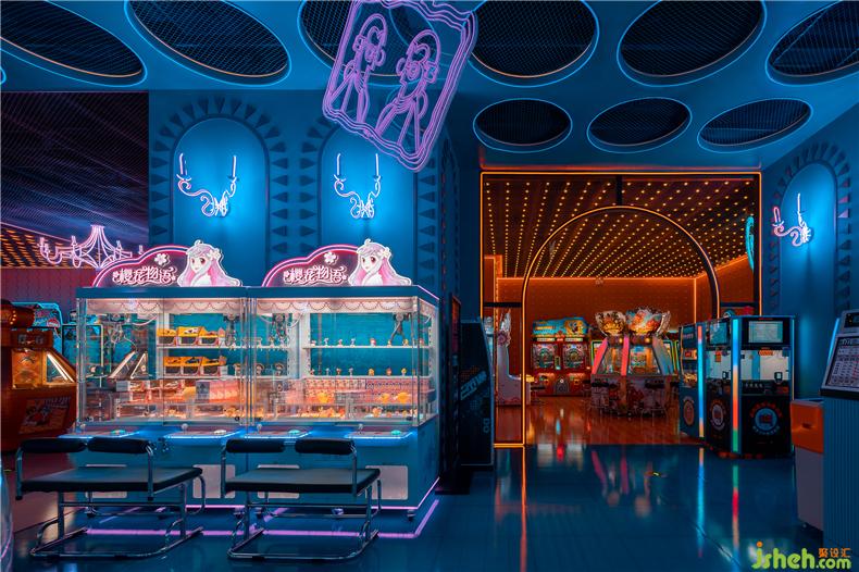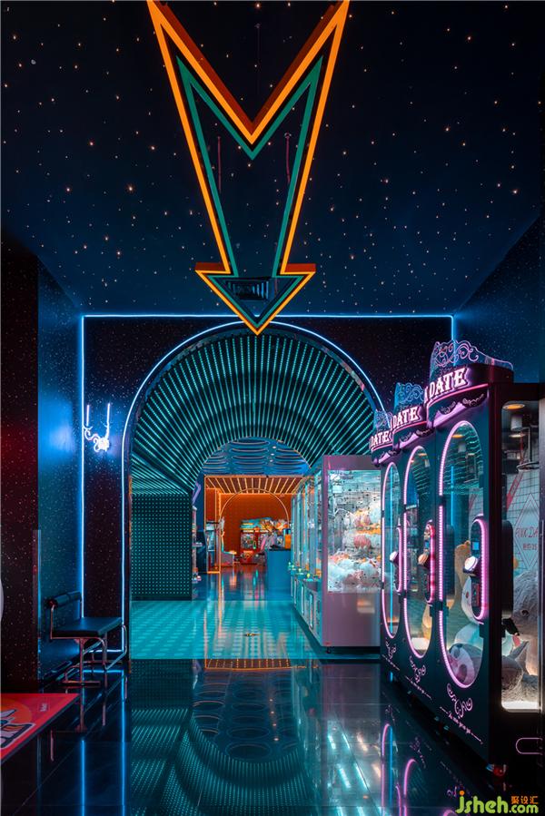 區(qū)別于其他Meland Club親子樂園的配置,游樂園設(shè)計在這個樂園范圍內(nèi)還新增了供青年消費者娛樂的電玩空間,設(shè)計師以賽博朋克宮殿為主題打造了一個復古迷幻的超新銳娛樂殿堂,以色彩構(gòu)建奇幻場所,用動漫主題來凸顯娛樂屬性,與游戲者產(chǎn)生互動,共繹一個沉浸式的夢境序章。