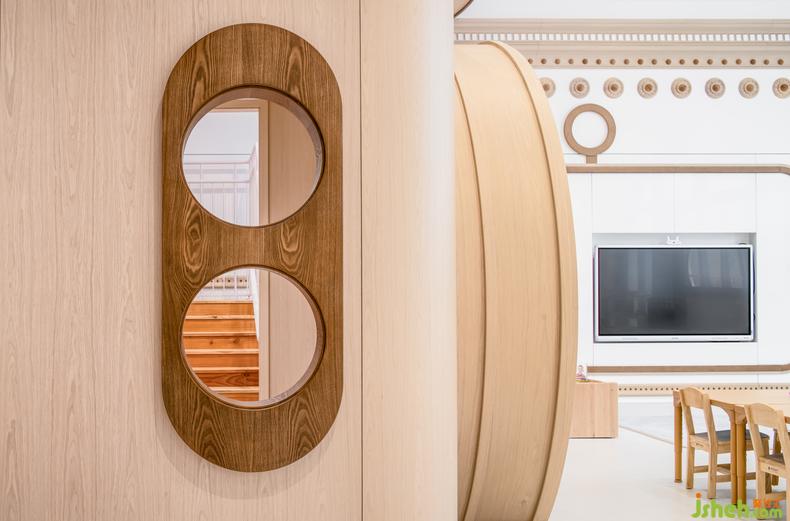 在孩子們創(chuàng)作與展示天賦的空間,設(shè)計(jì)師采取了設(shè)計(jì)的減法,讓一切的重心都回歸到孩子身上。教室內(nèi)所有柱體的底部,都根據(jù)幼兒的身高做了軟包處理,防止在運(yùn)動(dòng)過程中造成撞傷。
