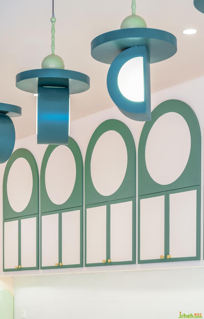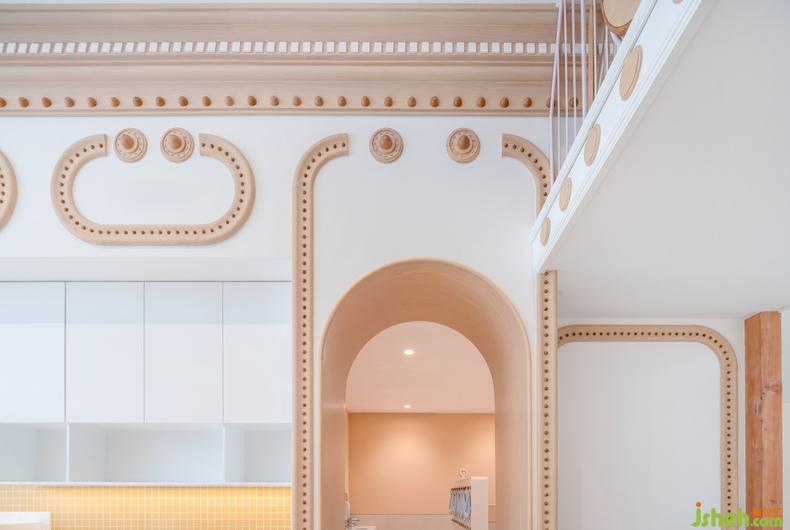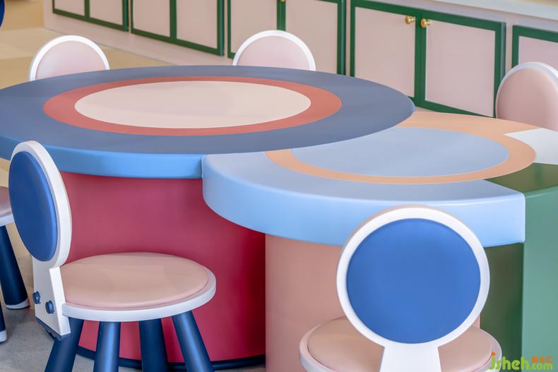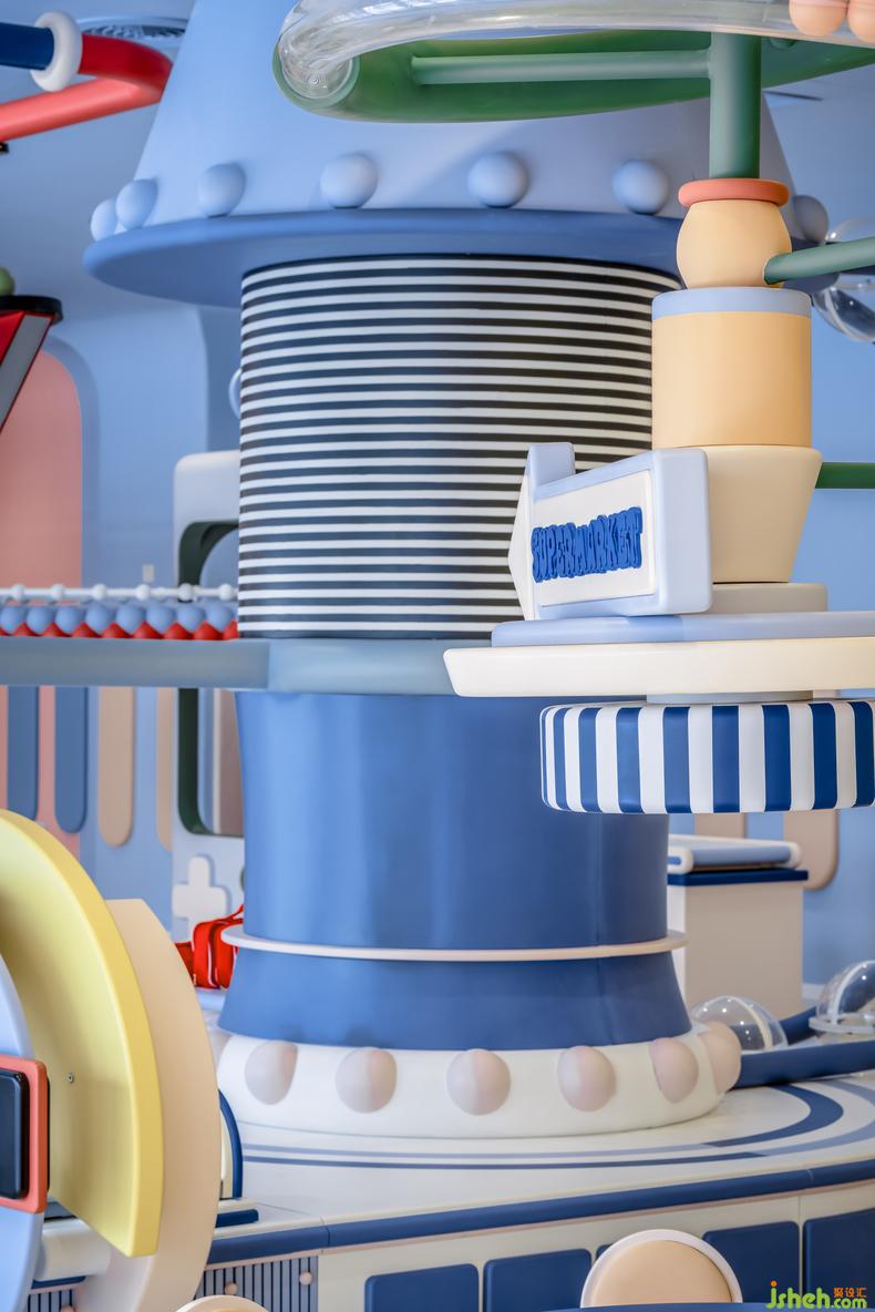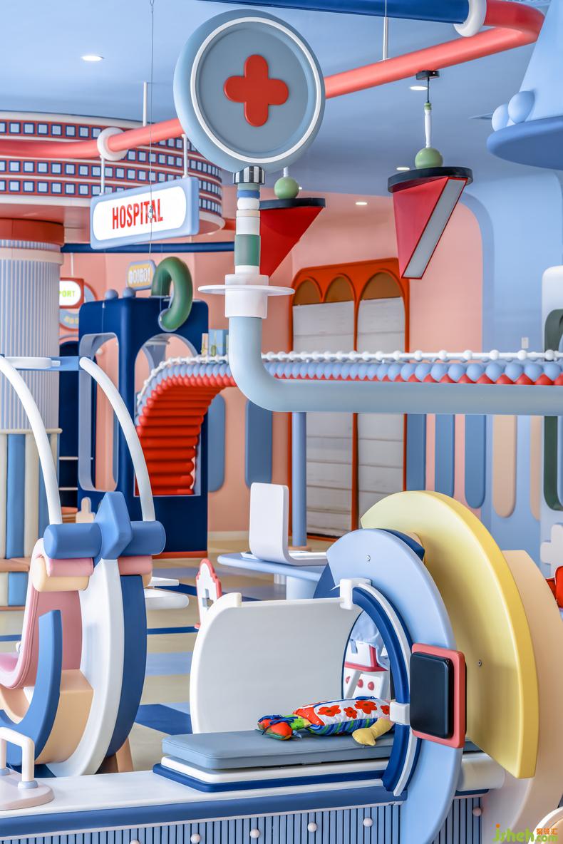 提供職業(yè)體驗(yàn)的兒童小鎮(zhèn)內(nèi),幼兒園設(shè)計(jì)進(jìn)行了大型道具的統(tǒng)籌設(shè)計(jì),融入了超市、醫(yī)院等、還結(jié)合了一個(gè)真實(shí)的廚房,美學(xué)調(diào)性的統(tǒng)一讓整個(gè)小鎮(zhèn)看起來更像專屬于孩子們的迷你城市。保健室、鋼琴房、心理游戲室以及其他教師使用的辦公區(qū)域作為密度較低的附屬功能空間,在配色上遵循了整個(gè)項(xiàng)目的柔軟色調(diào),還在頂角線和墻面裝飾等局部細(xì)節(jié)處做了精致設(shè)計(jì),讓孩子們與家長在步入園內(nèi)的任何一個(gè)空間都不覺審美失調(diào)。
