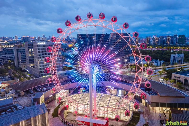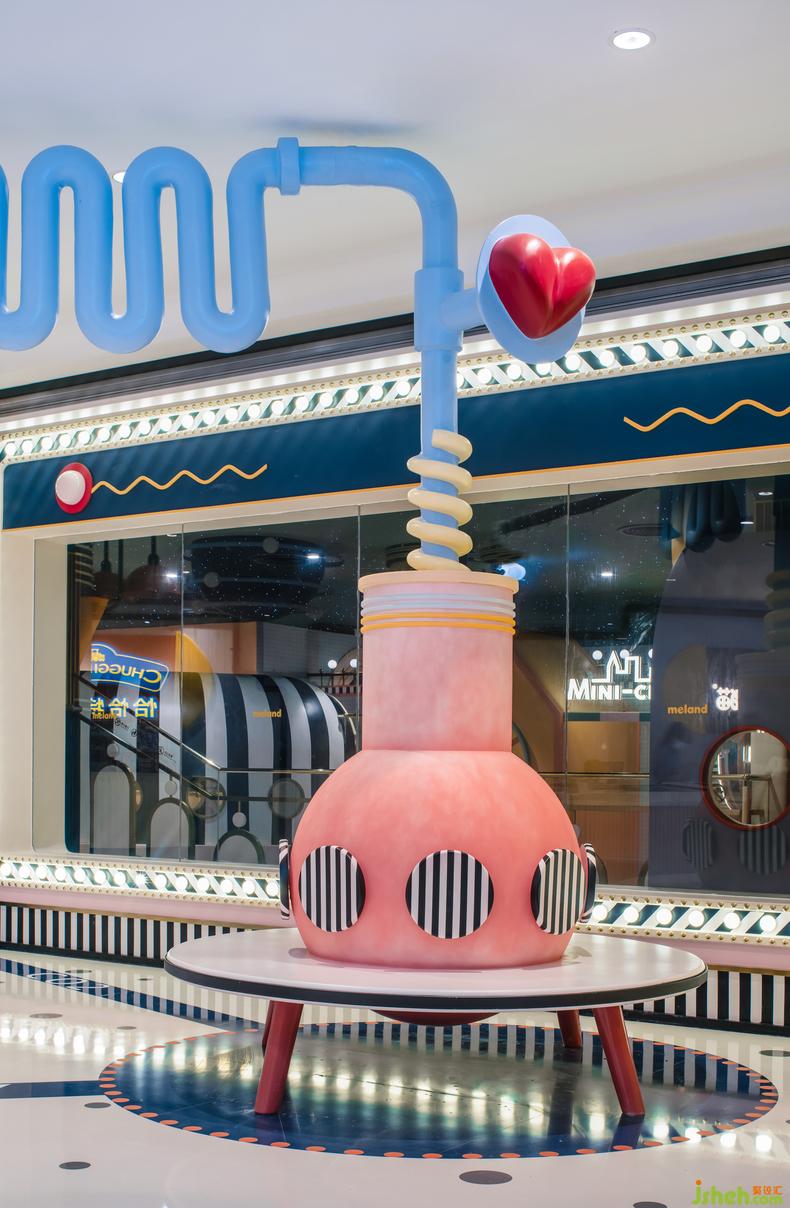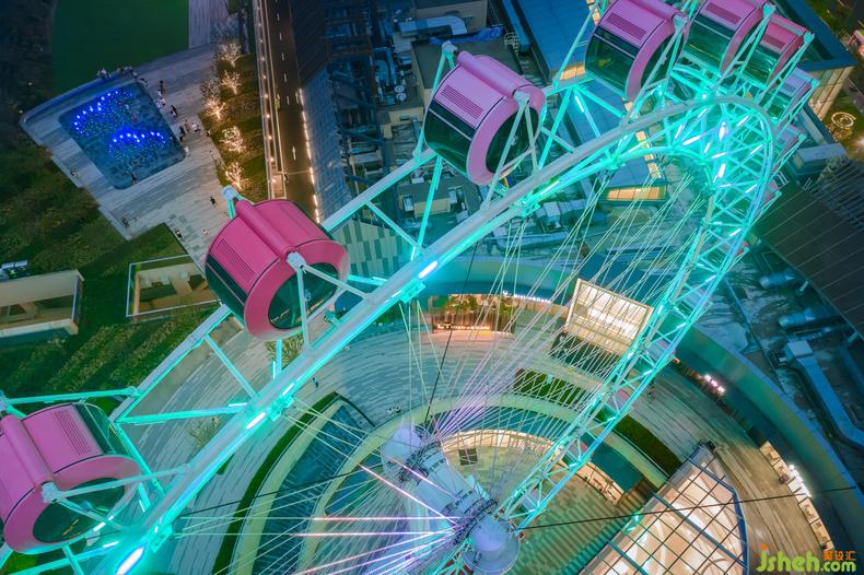 除了2、3層的兒童主題公區(qū)改造,設(shè)計(jì)師還應(yīng)甲方的需求將室外露臺(tái)區(qū)打造成了整個(gè)商場(chǎng)的最浪漫打卡地點(diǎn)。室內(nèi)設(shè)計(jì)師目標(biāo)人群從低齡兒童層,拓展到了年輕群體,粉紅摩天輪為空間中亟待發(fā)生的浪漫故事作了鋪墊
