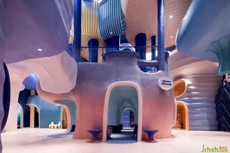 應(yīng)原創(chuàng)親子文化娛樂品牌“優(yōu)我寶”的委托,唯想國際將一座老舊廠房煥新改造為大型兒童藝術(shù)美學(xué)樂園。廠房優(yōu)越的室內(nèi)層高與新品牌的初生引發(fā)了設(shè)計(jì)師的想象,一片無限閃動(dòng)的藍(lán)色海洋從潛意識(shí)里浮現(xiàn)。